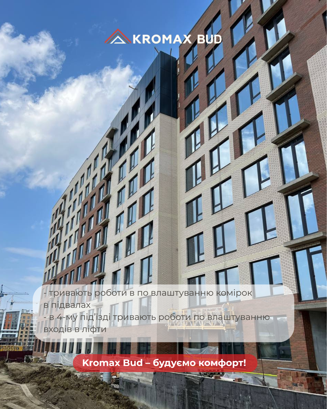 На об’єкті триває етап активного внутрішнього оздоблення та підготовки інженерної інфраструктури. Основні зусилля зосереджені на створенні комфортних умов у місцях загального користування.