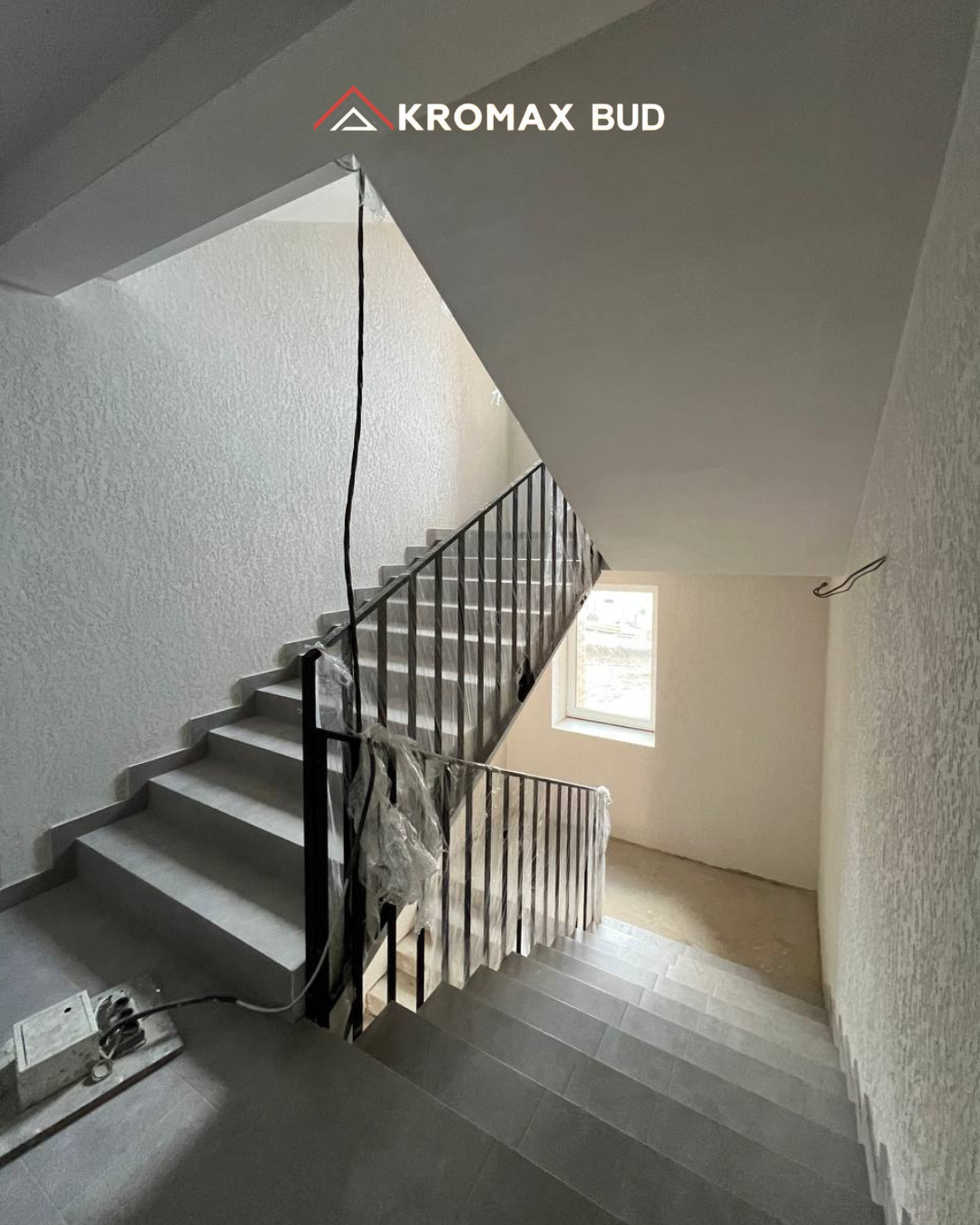 Естетика та дизайн: Майстри працюють над облицюванням ліфтових зон — триває влаштування декоративної плитки, що формує сучасний вигляд холів. Одночасно з цим у під’їздах монтують перила, забезпечуючи безпеку та завершеність сходових маршів.