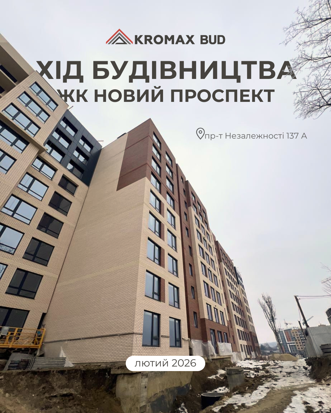 Хід будівництва ЖК «Новий Проспект» станом на лютий 2026 року.