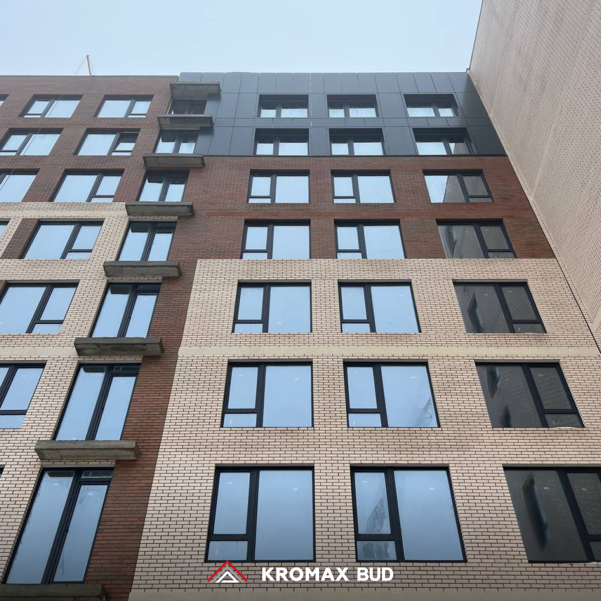 🔹 Завершені фасадні роботи, зокрема монтаж сучасних композитних панелей